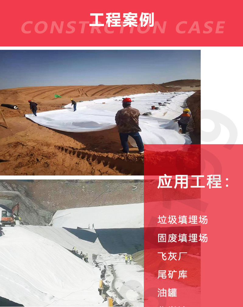 水利工程堤坝及护坡的反滤,渠道的隔离、防渗;